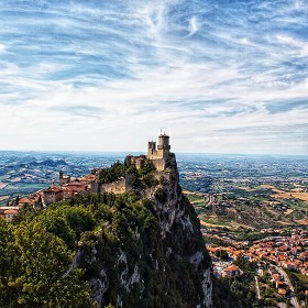 PROGRAMMAPartenza in pullman per San Leo. Dal parcheggio dei pullman, si raggiunge la Fortezza di San Leo con bus navetta o a piedi circa 10 minuti in leggera salita. Da circa 600 mt. d'altezza, la rocca domina la vallata del Marecchia e un panorama di boschi, picchi rocciosi e calanchi che si spinge fino al mare. Visita guidata della Rocca, testimonianza di arte militare che in passato ha avuto anche la funzione di carcere, vi furono reclusi Felice Orsini e l'avventuriero palermitano Cagliostro. A seguire, visita libera del borgo ancora lastricato in pietra dove si trovano gli antichi edifici romanici (Pieve, Torre e Cattedrale) e i numerosi palazzi rinascimentali. A fine mattinata incontro con il pullman e trasferimento a San Marino. Pranzo libero. Pomeriggio a disposizione per visita libera di San Marino, capitale di una delle repubbliche più antiche al mondo. La cittadina sorge sui pendii del monte Titano ed è conosciuta per il centro storico medievale circondato da mura e per le viuzze acciottolate. Al termine della visita, partenza per il rientro. Arrivo previsto in prima serata.